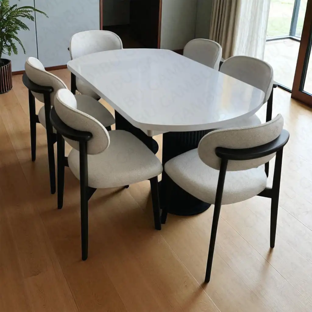 Bohem Açılır Masa Sandalye Takımı, fonksiyonellik ve şıklığı bir araya getiriyor. Norte naturel ahşap sandalyelerin zarif ve konforlu tasarımı, beyaz üst tablaya sahip açılır masa ve siyah ayaklarla mükemmel bir uyum sağlıyor. Genişleyebilen masa yapısı, kalabalık misafirler için pratik kullanım sunarken, modern bohem tarz dekorasyonlara estetik bir dokunuş katıyor.